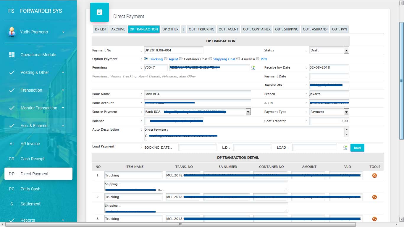 Pengecekan dari status dari Pembayaran Vendor Trucking |